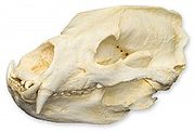 They have the longest tail in the bear family, which can grow to 6-7 inches.[9] Their back legs are not very strong, though they are knee-jointed, and allow the sloth bear to assume almost any position. The ears are very large and floppy. Sloth bear fur is completely black (rusty for some specimens), save for a whitish Y or V shaped mark on the chest. This feature is sometimes absent, particularly in Sri Lankan specimens. This feature, which is also present in Asian black bears and sun bears, is thought to serve as a threat display, as all three species are sympatric with tigers. The coat is long, shaggy and unkempt, and is particularly heavy behind the neck and between the shoulders, forming a mane which can be 30 cm long. The belly and underlegs are almost bare. Adult sloth bears usually weigh 220 lbs, though they can rach up to 300 lbs. They are 2.3 feet high at the shoulder, and have a body length of 5-6 feet. Females are smaller than males, and have more fur between the shoulders.